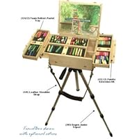 The Guerilla system has a lot of accessories for your particular medium; oil painters can choose a wooden pochade (cigar box) that holds paints, a telescoping easel, a box that has paint storage as well as wet canvas storage (necessary for plein air). There are watercolor boards--frames that stretches either a full, half or quarter sheet of watercolor paper and attach to the tripod, palette holders, palettes for watercolor, umbrella and brush box. You can pick the components you need whether you are a watercolorist, pastel artist or oil painter.